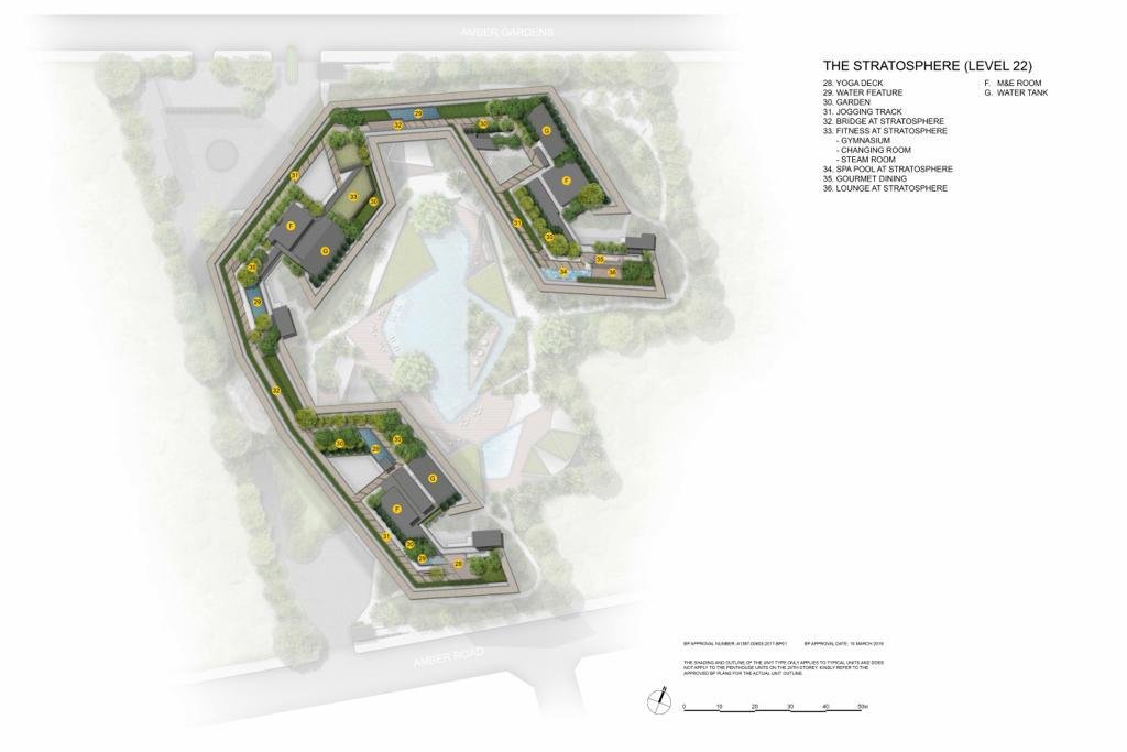 Based on the preliminary site plan received, most of the facilities are located on the first floor while the rest will be placed within communal sky garden on the 22nd floor - also known as ‘The Stratosphere’, which links across all three residential towers at Amber Park.