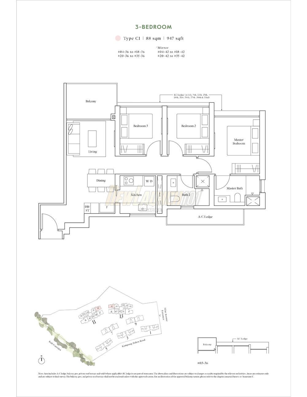 - 3-Bedroom (936to 1109 sqft)