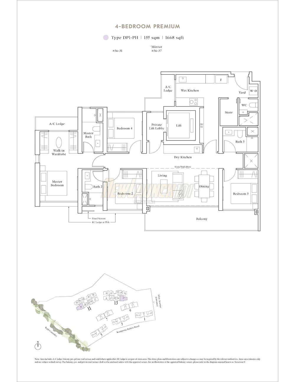 According to the preliminary information from the developer, there will be a total of 1,074 units across two residential towers (each tower is 56 storeys high) and five low-rise residential blocks (each 4-storey tall).