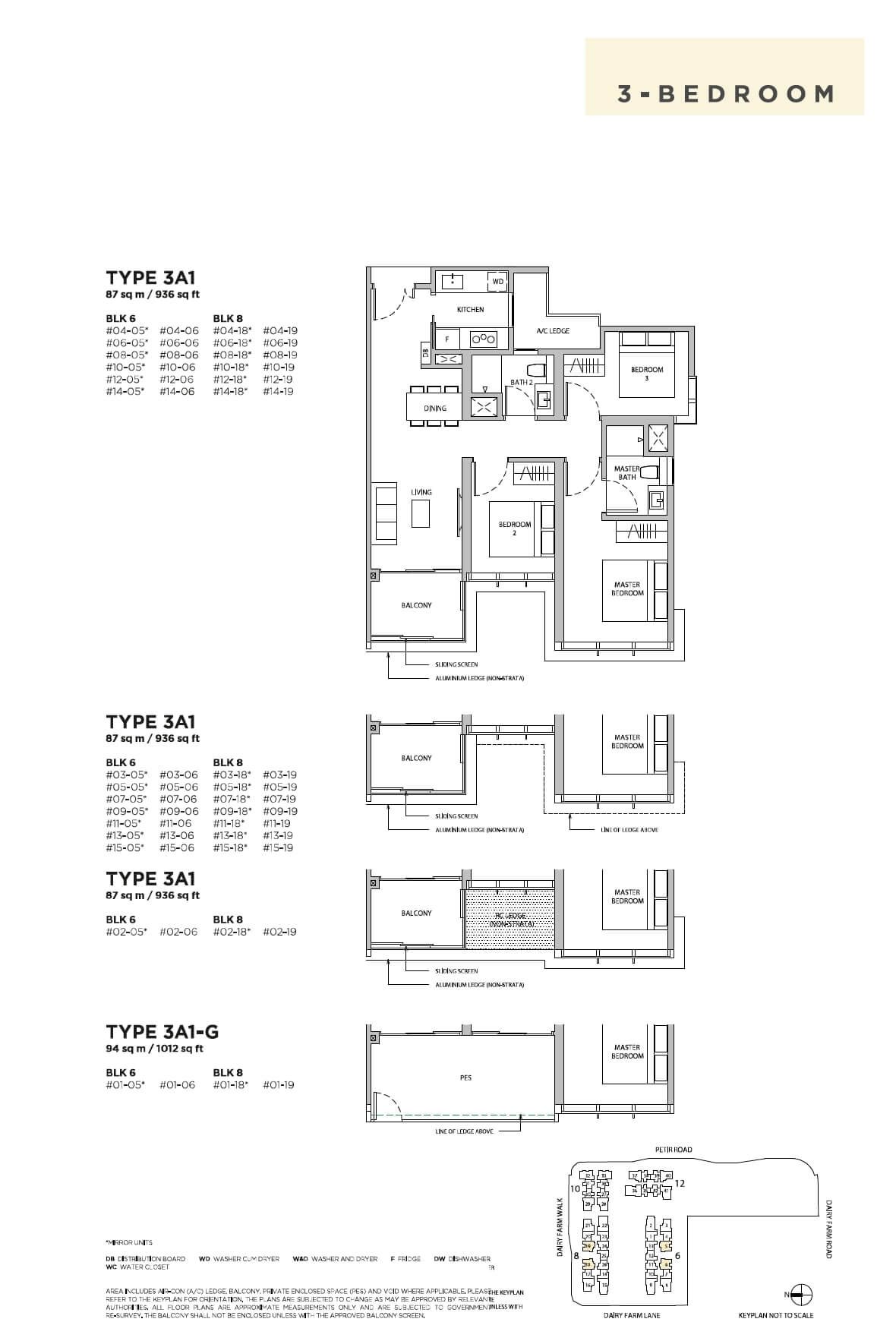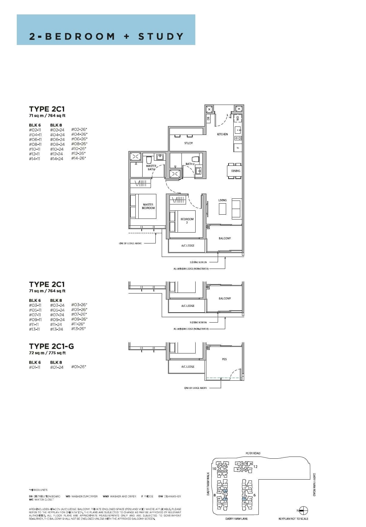 Here is the Dairy Farm Residences floor plan for each unit type: