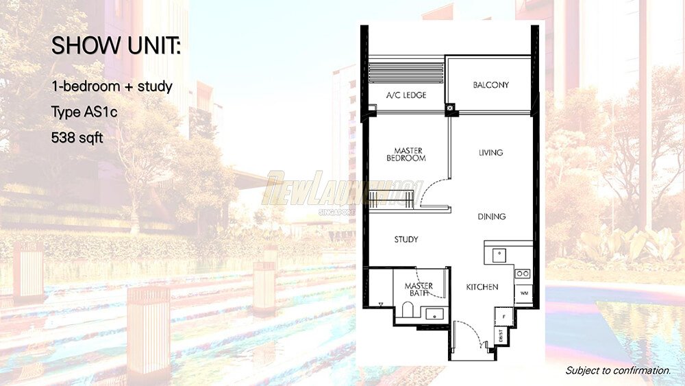 | 1-Bedroom + Study | 538 - 689 sq ft |