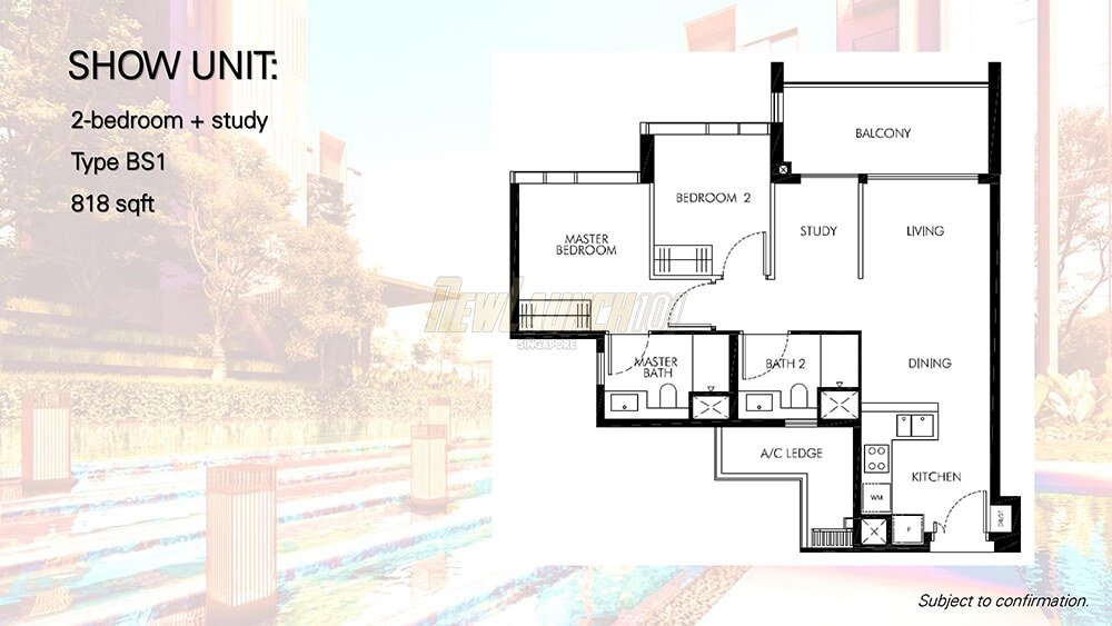 | 2-Bedroom + Study | 818 - 926 sq ft |