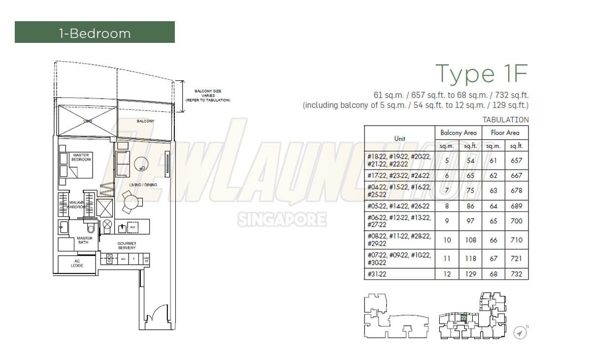 Here is the Marina One Residences floor plan for each unit type: