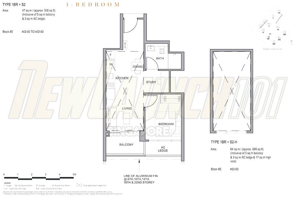 | 1-Bedroom + Study | 506 to 710 sq ft |