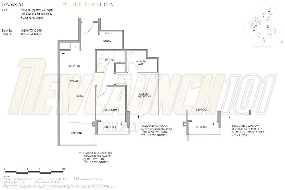 | 2-Bedroom + Study | 743 sq ft |