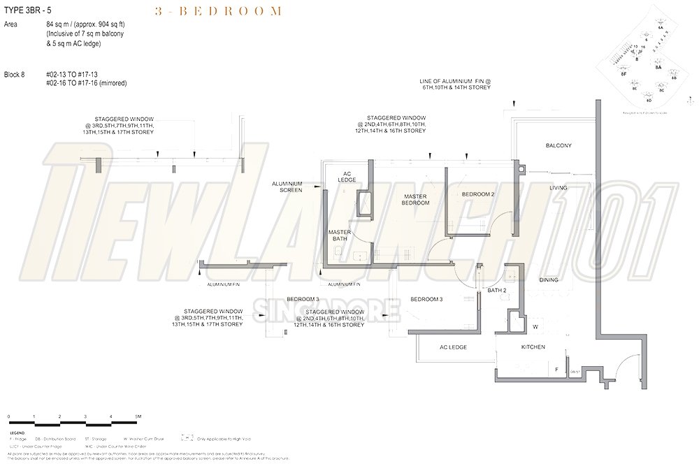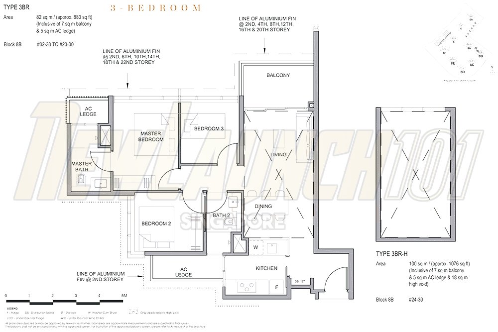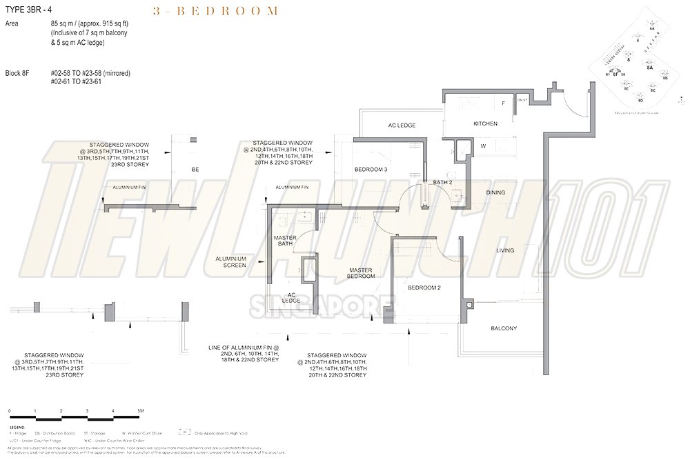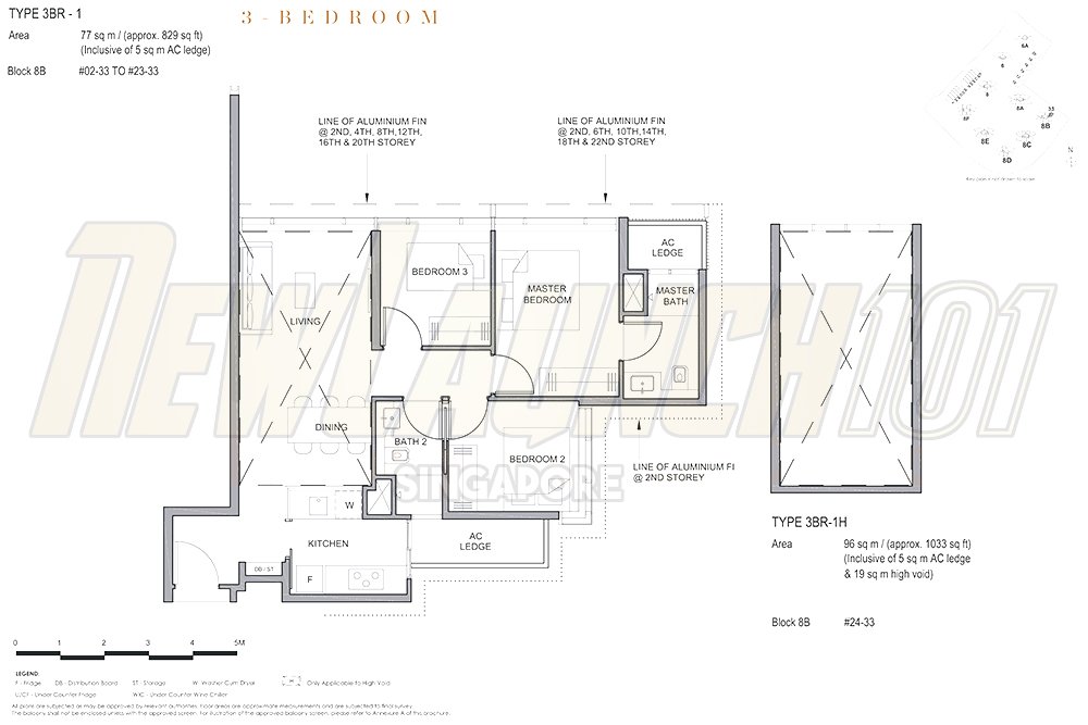 | 3-Bedroom | 829 to 915 sq ft |