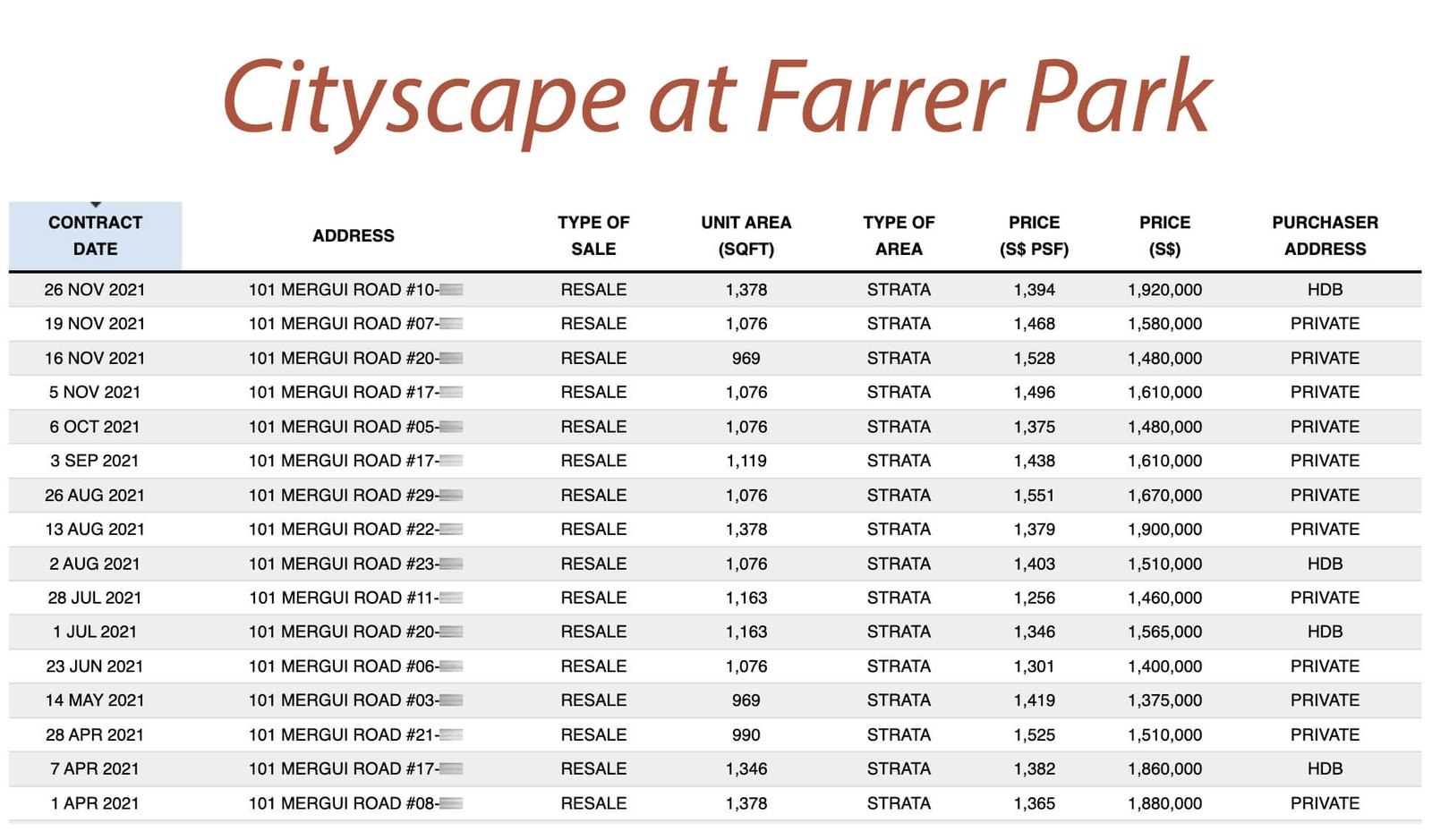 Such projects include Cityscape at Farrer Park, Sturdee Residences, and Uptown at Farrer.