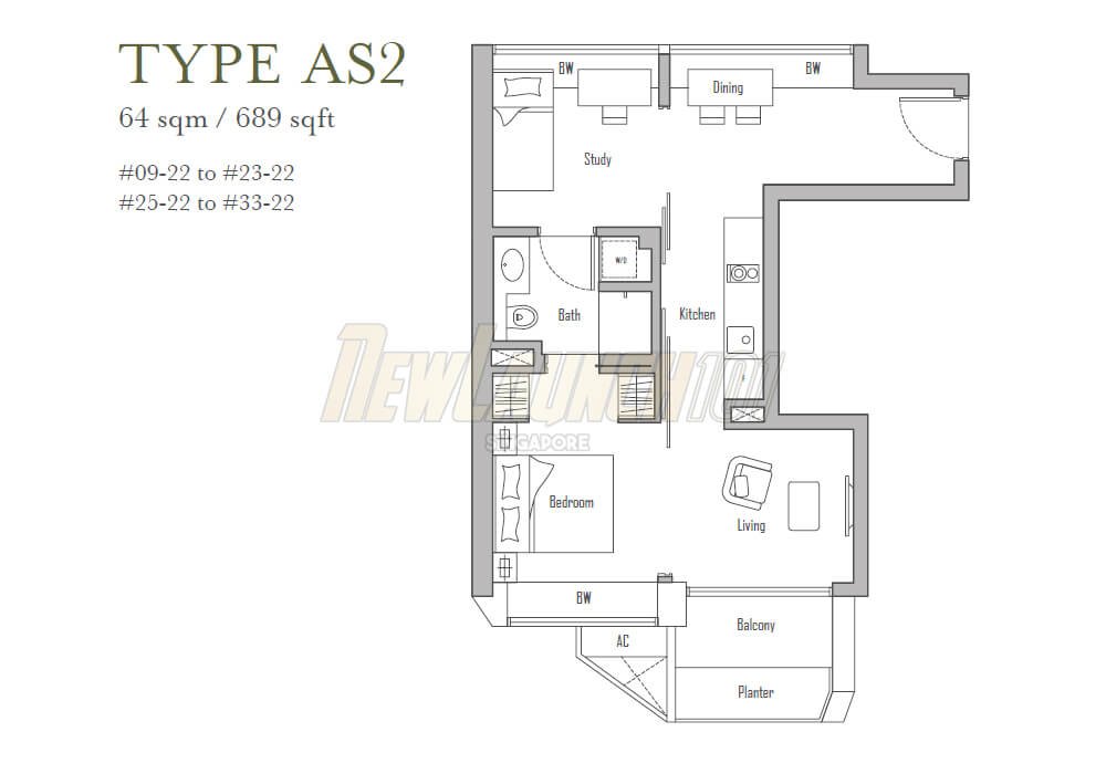 | 1-Bedroom + Study | 689 to 743 sqft | Fully Sold | |