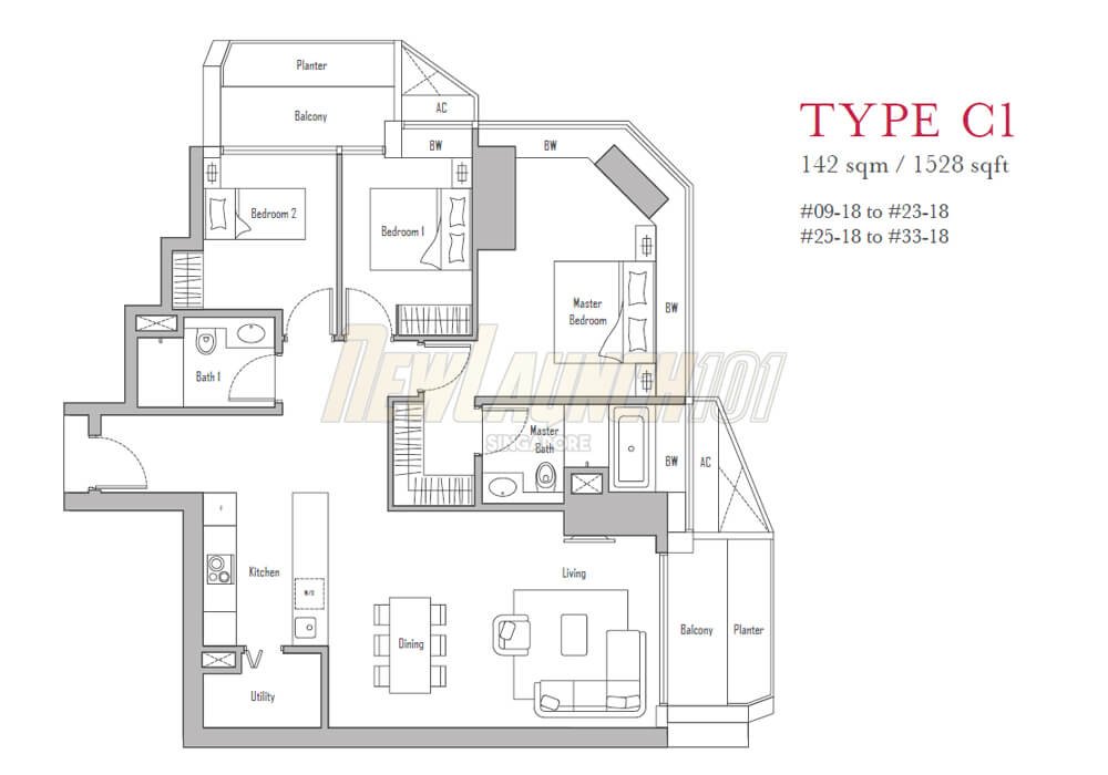 All the units look good - probably except for the 3-bedroom layouts of Type C1 and C6 which has an odd corner in the master bedroom and the bay windows (some will feel that its a waste of space).