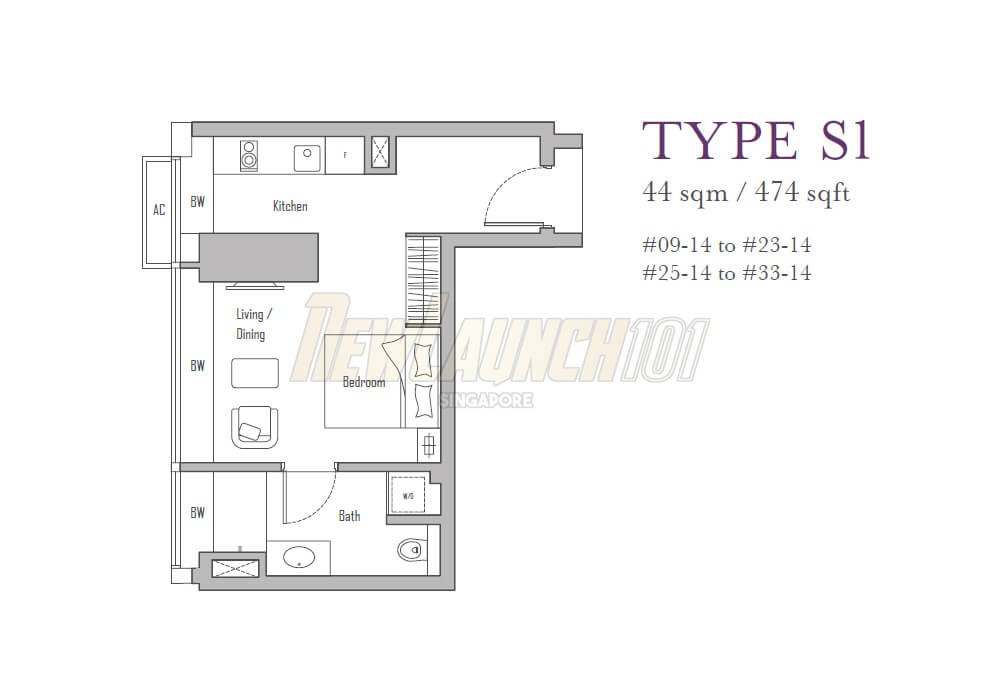 Here are the V on Shenton floor plan for each unit type (except for penthouses):